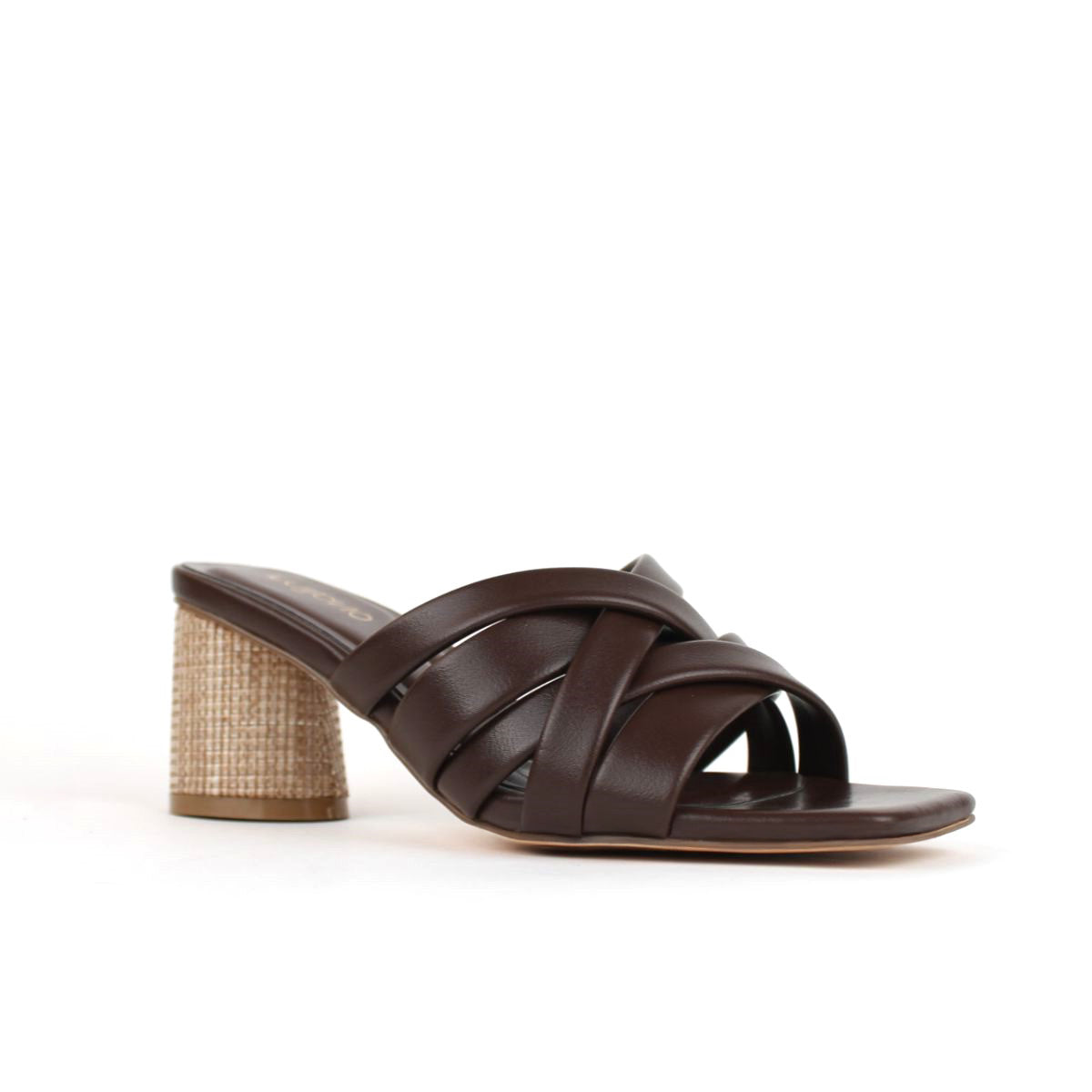 Woven Block Heel Sandal. This modern slide sandal features a bold, intricately woven upper that adds a touch of texture to any outfit. Designed with a comfortable square toe and a sturdy, textured block heel, this mule is the perfect blend of trend-forward style and all-day comfort.