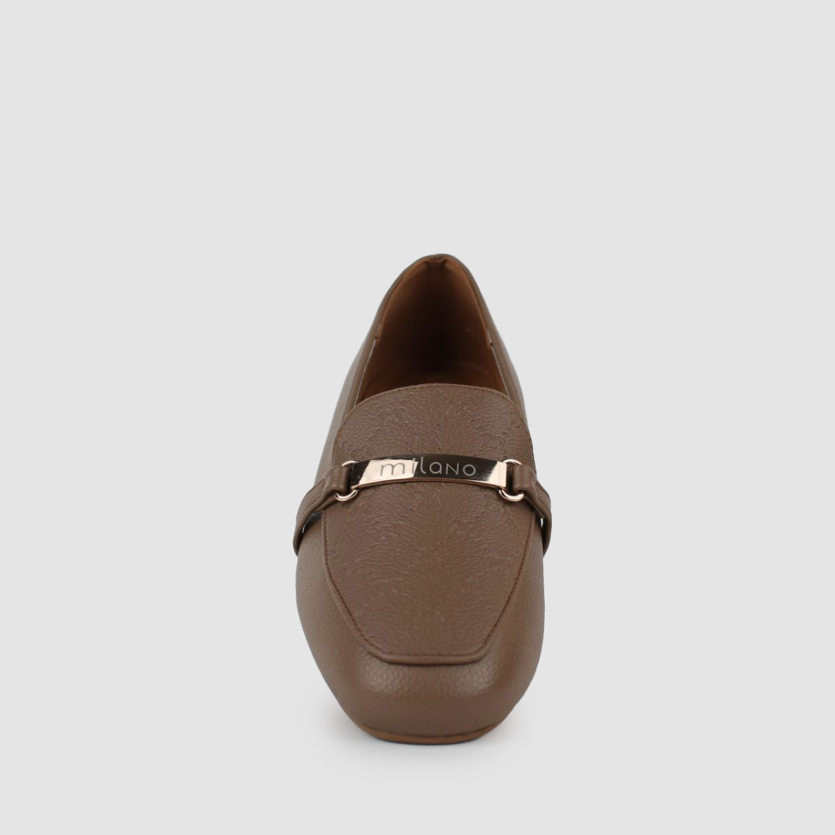 Discover the perfect blend of fashion and comfort with our flat loafers. It has signature M monogram print on the vamp, a sleek gold-tone metallic bar, with their comfortable flat sole offering a stylish solution for professional settings, social gatherings, or simply elevating your everyday attire.