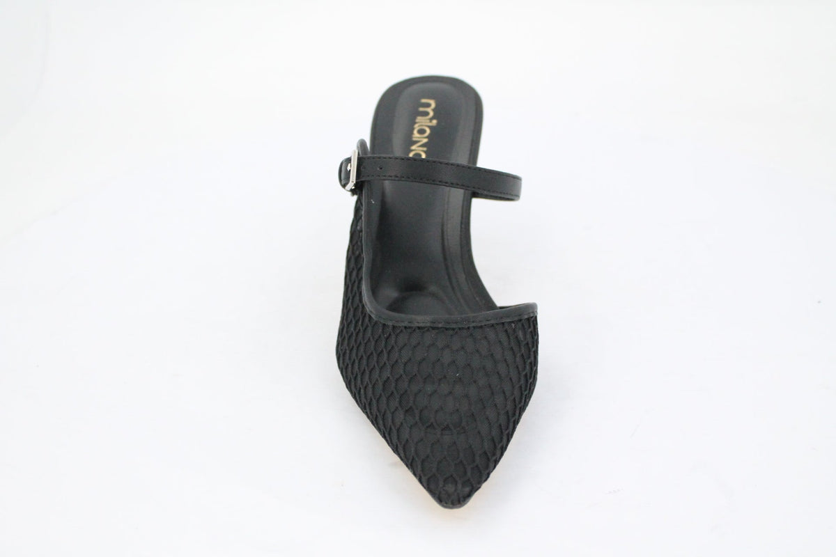 Step into the night with these glamorous Satara heel mules. Their sharp pointed toe and towering stiletto heel, accented by a luxurious gold-finished sole, radiate modern sophistication. The breathable mesh offers a hint of intrigue, while the delicate ankle strap ensures you'll feel as secure as you look stylish. Make a statement at your next special event with these exquisitely refined mules.