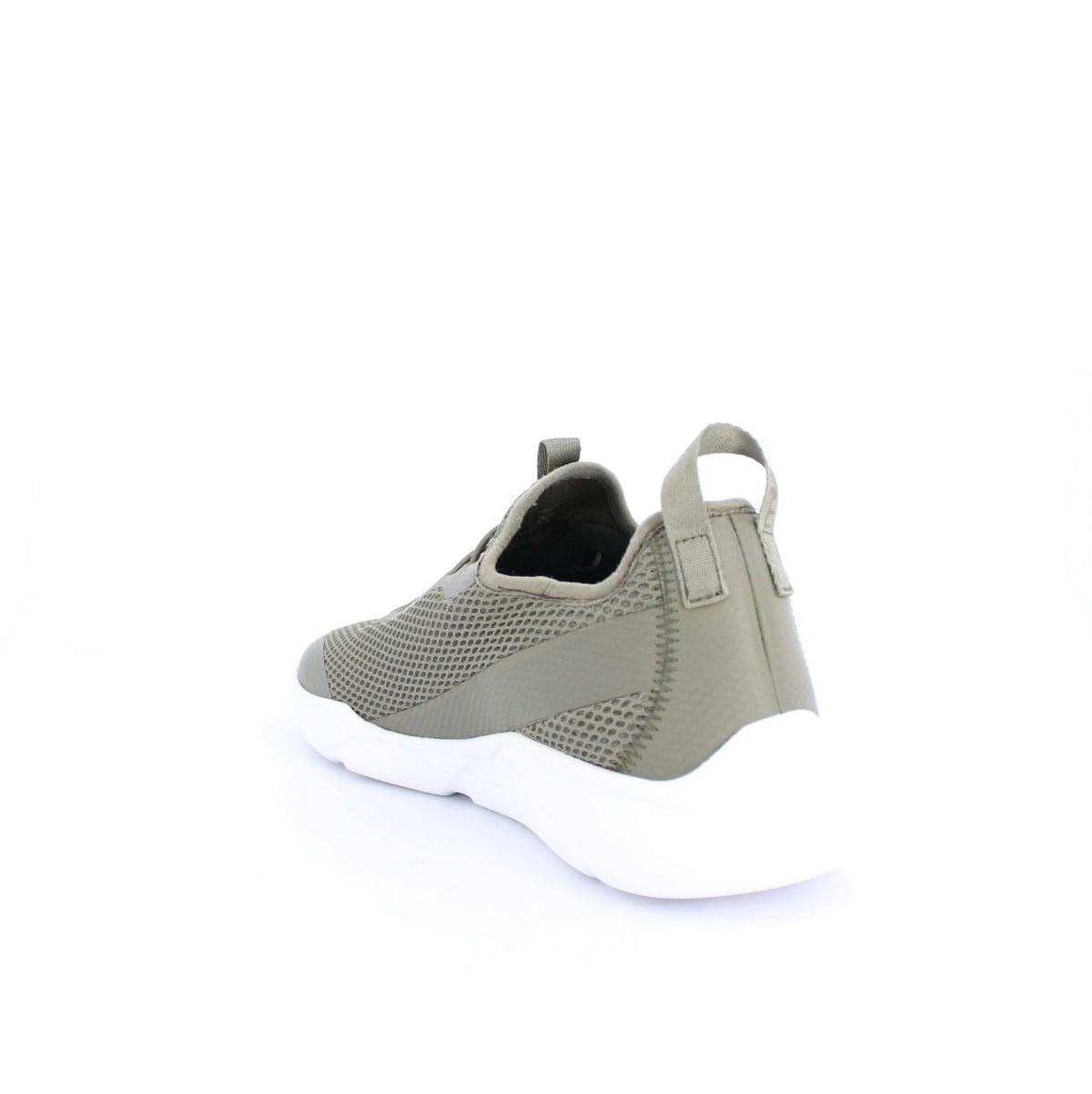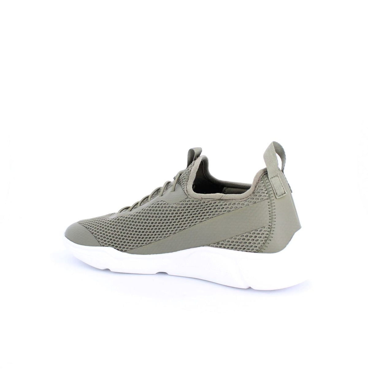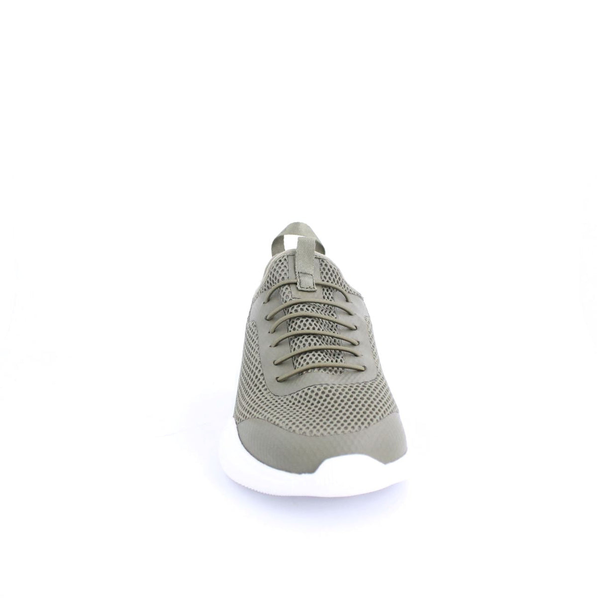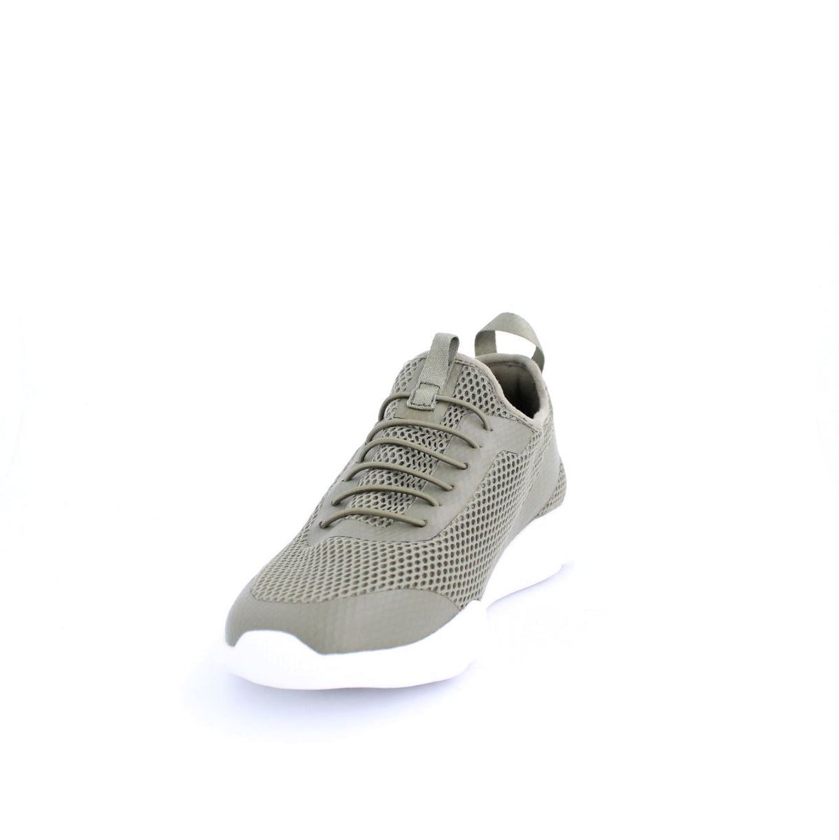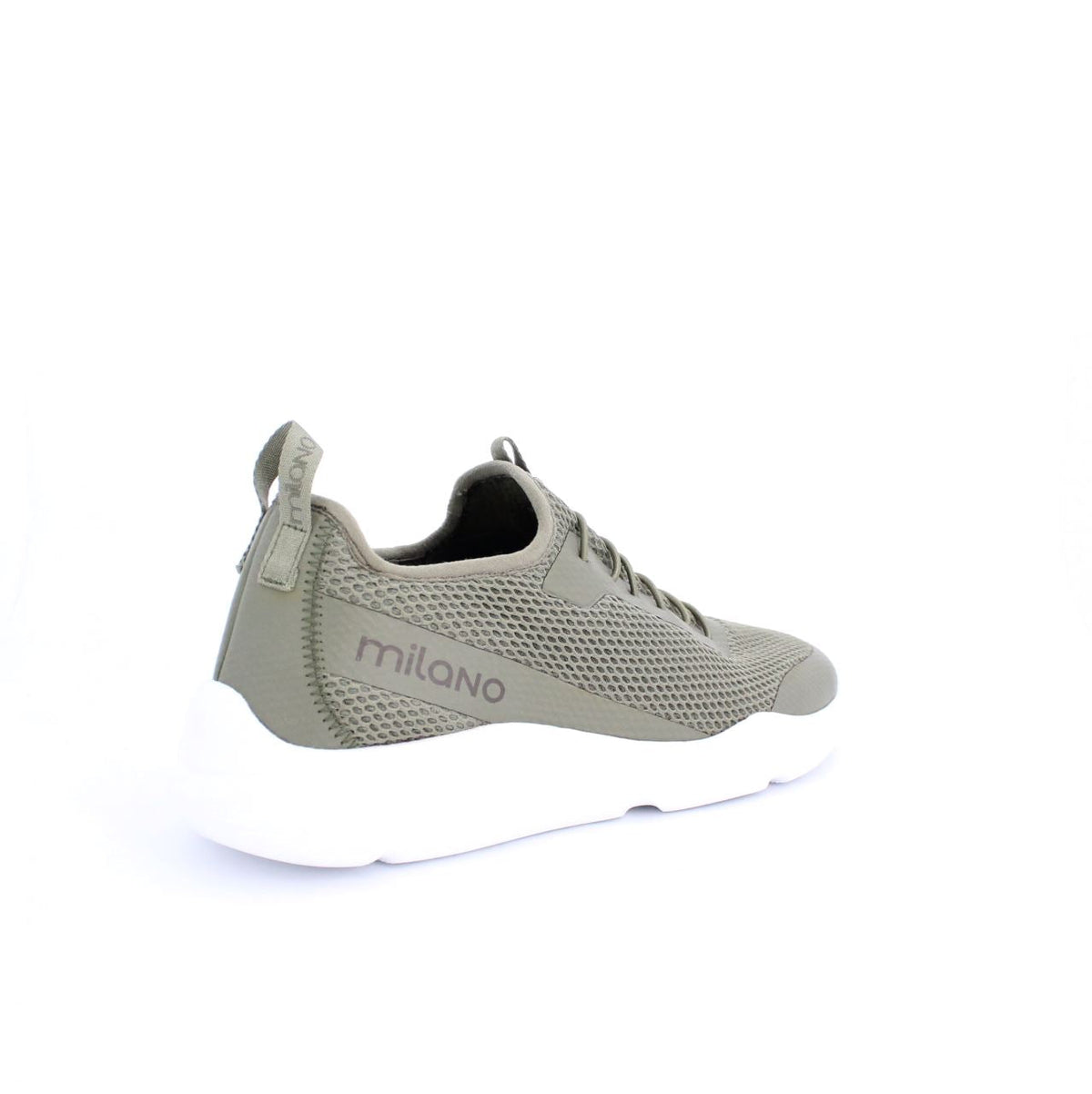 A  casual sneaker  with a modern and minimalist design in a muted green or olive tone. The upper part appears to be made of a breathable mesh material for comfort and ventilation and It is a lightweight and versatile shoe suitable for casual or everyday wear. These shoe has a memory foam insole for added comfort.