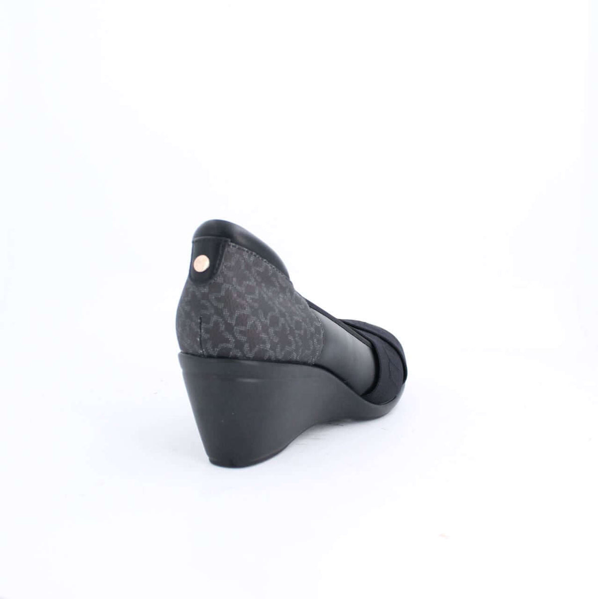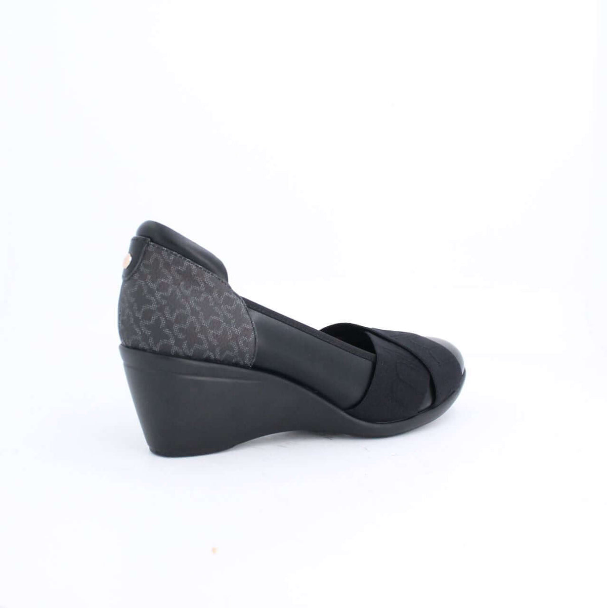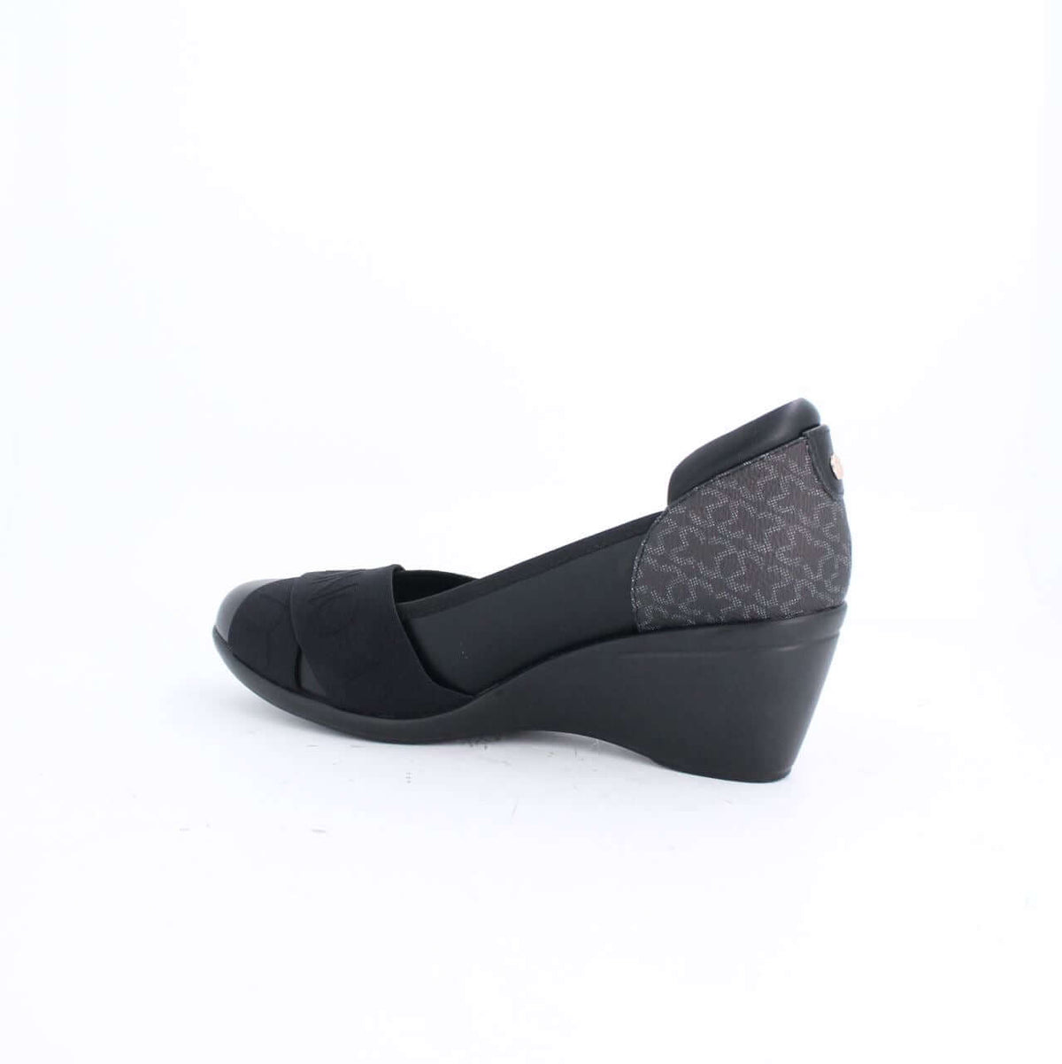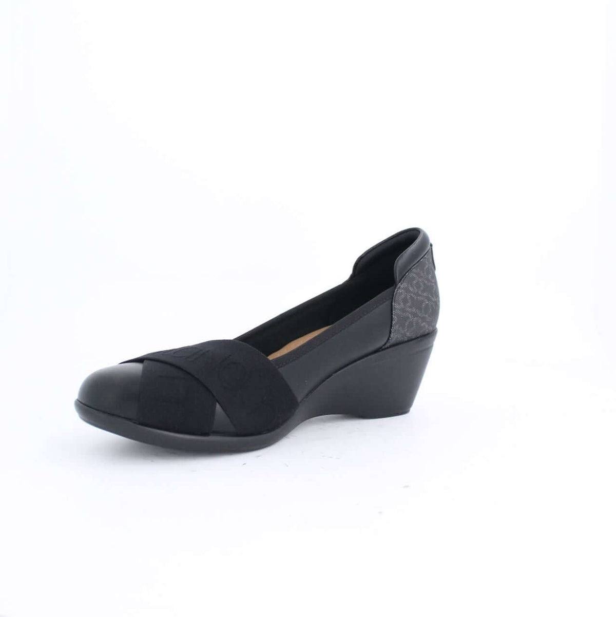 Milano combines a retro aesthetic with contemporary character to create these Alexie wedge pumps update - which are a spin off from our bestselling style Alexie. Crafted from the brand's newest monogram print, which you can see lining the back part of the shoe. They feature a comfortable mid-heel wedge which provides the ultimate "comfort height" - like we call it. The front part of the shoe features an elasticated band which has the Milano branding in a self-colored print which stands out in the most subtle yet stylish way.