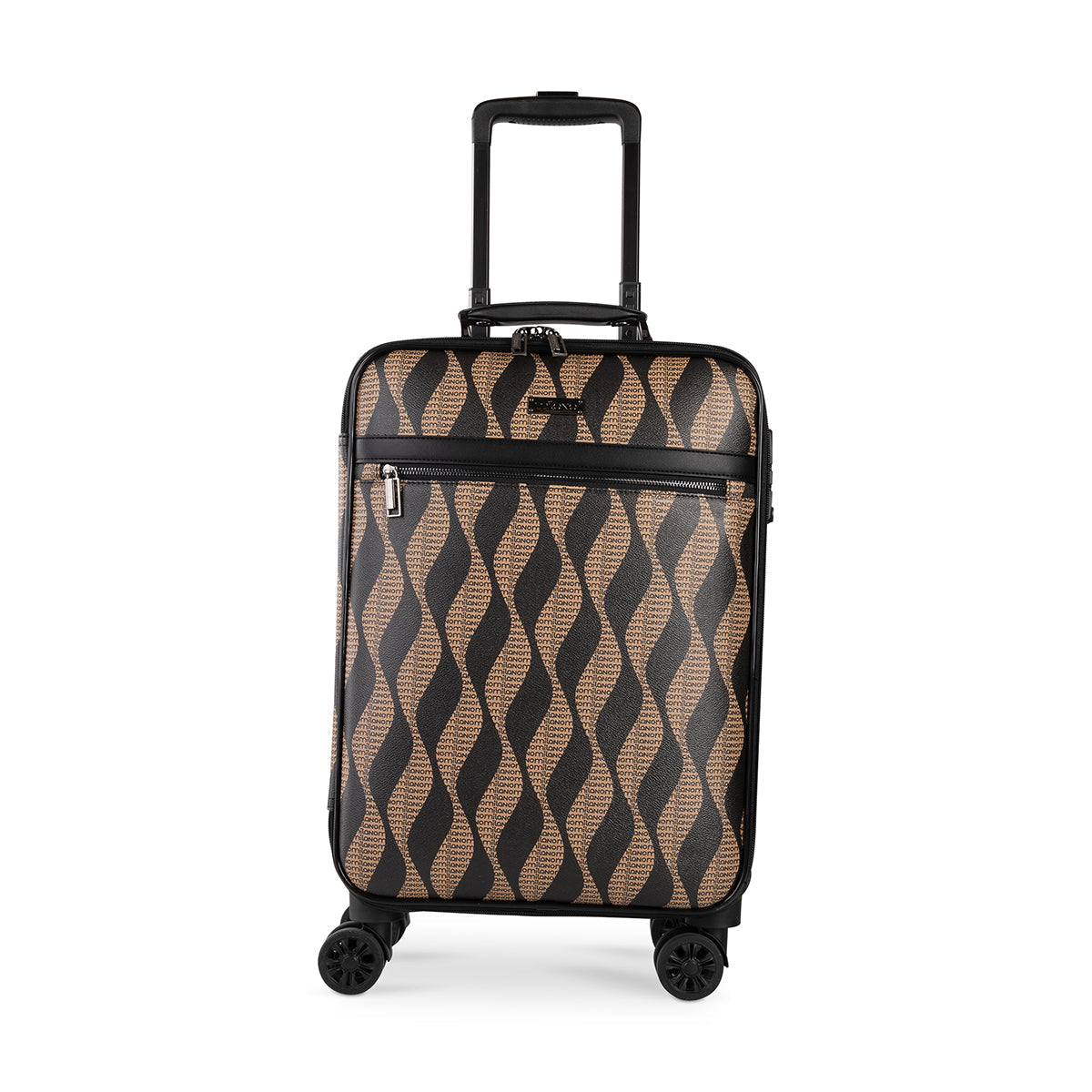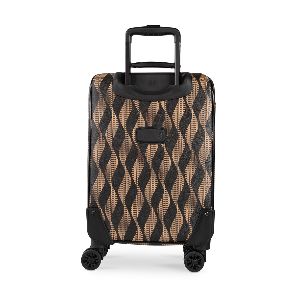 Travel in unparalleled style with our striking hardside luggage, featuring a captivating wavy pattern in black and tan. Designed for the modern traveler, this durable spinner suitcase boasts smooth 360-degree wheels, a convenient telescopic handle, and an integrated combination lock, making every journey effortlessly chic and secure.
