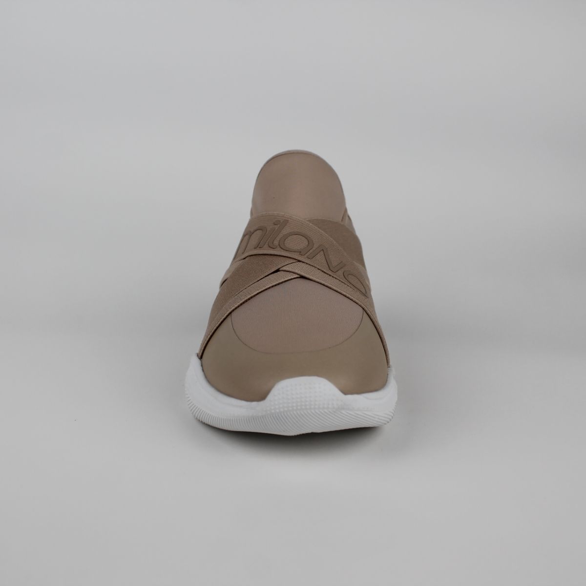 New colorway of the style Dabria, effortlessly stylish and comfortable. These slip-on sneakers feature a sock-like fit and a sleek, multi-strap design with "Milano" statement" across the vamp. The lightweight white sculpted sole provides a modern, athletic look, while the neutral beige tone ensures versatility for everyday wear.