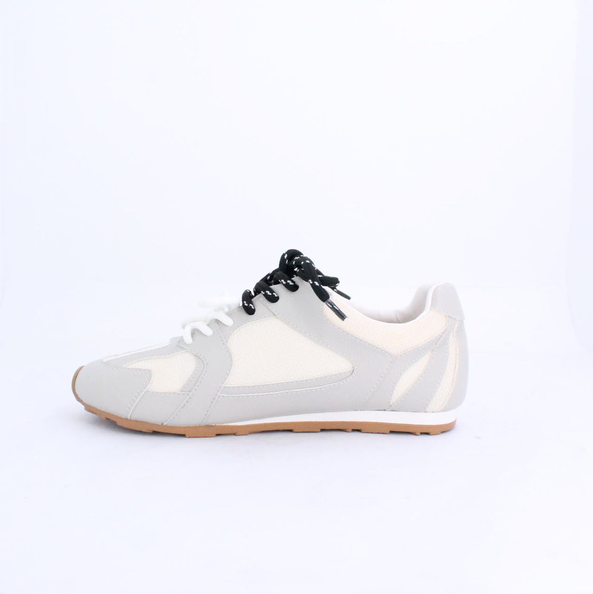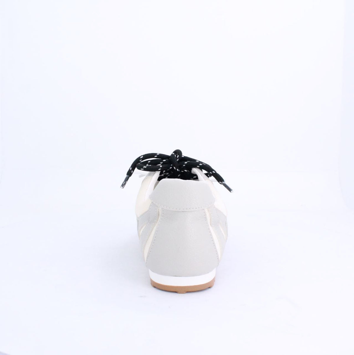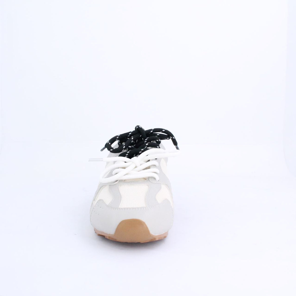 Add a touch of retro charm to your everyday style with these Jayk Sneakers. Crafted with a combination of smooth beige leather like and breathable mesh panels, these sneakers offer both comfort and a classic aesthetic perfect for your active lifestyle. The contrasting white midsole and gum outsole provide a subtle sporty touch, while the unique blue and white lace detail adds a playful element. These lace-up sneakers offer a secure and adjustable fit for all-day wear.