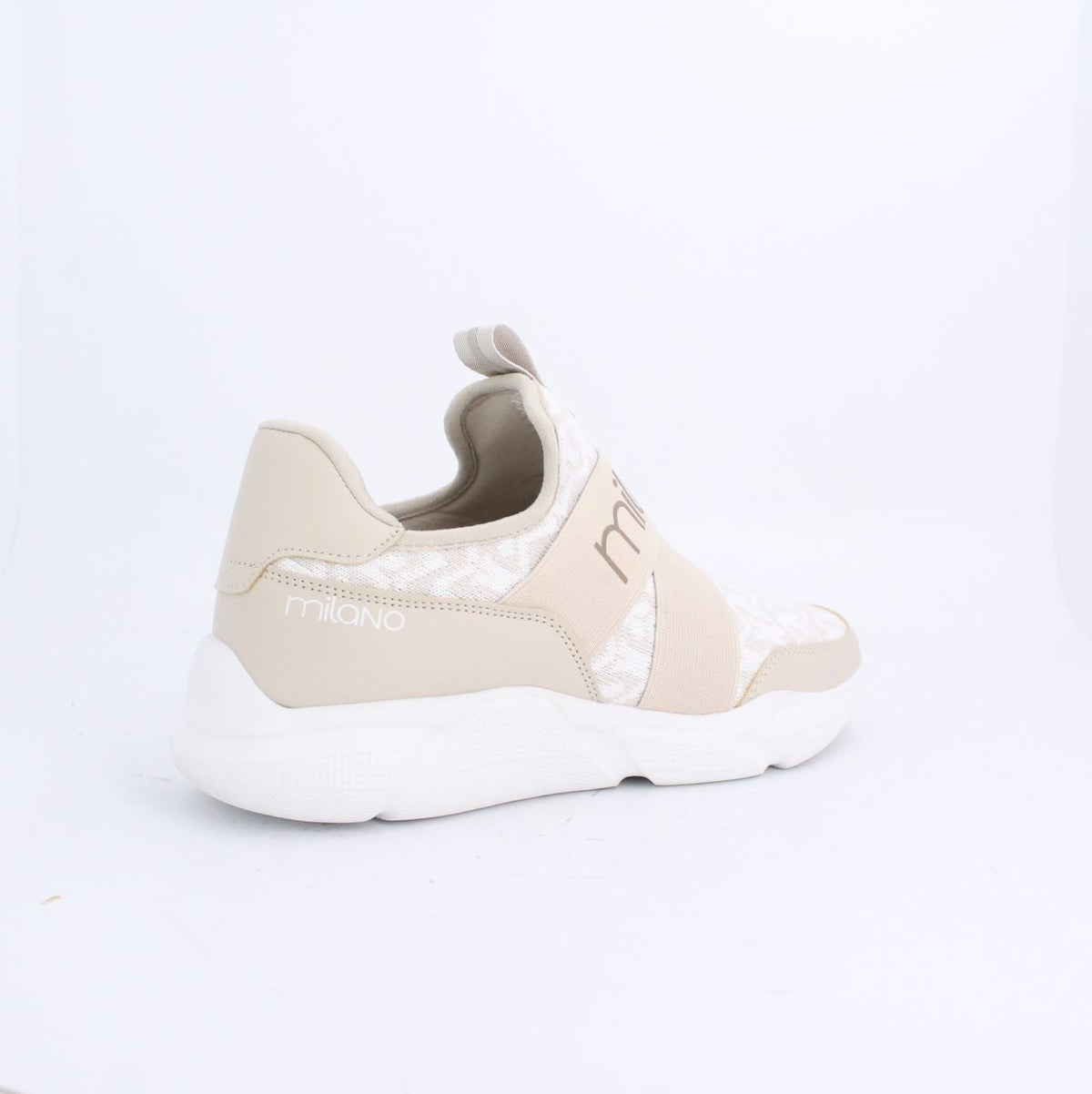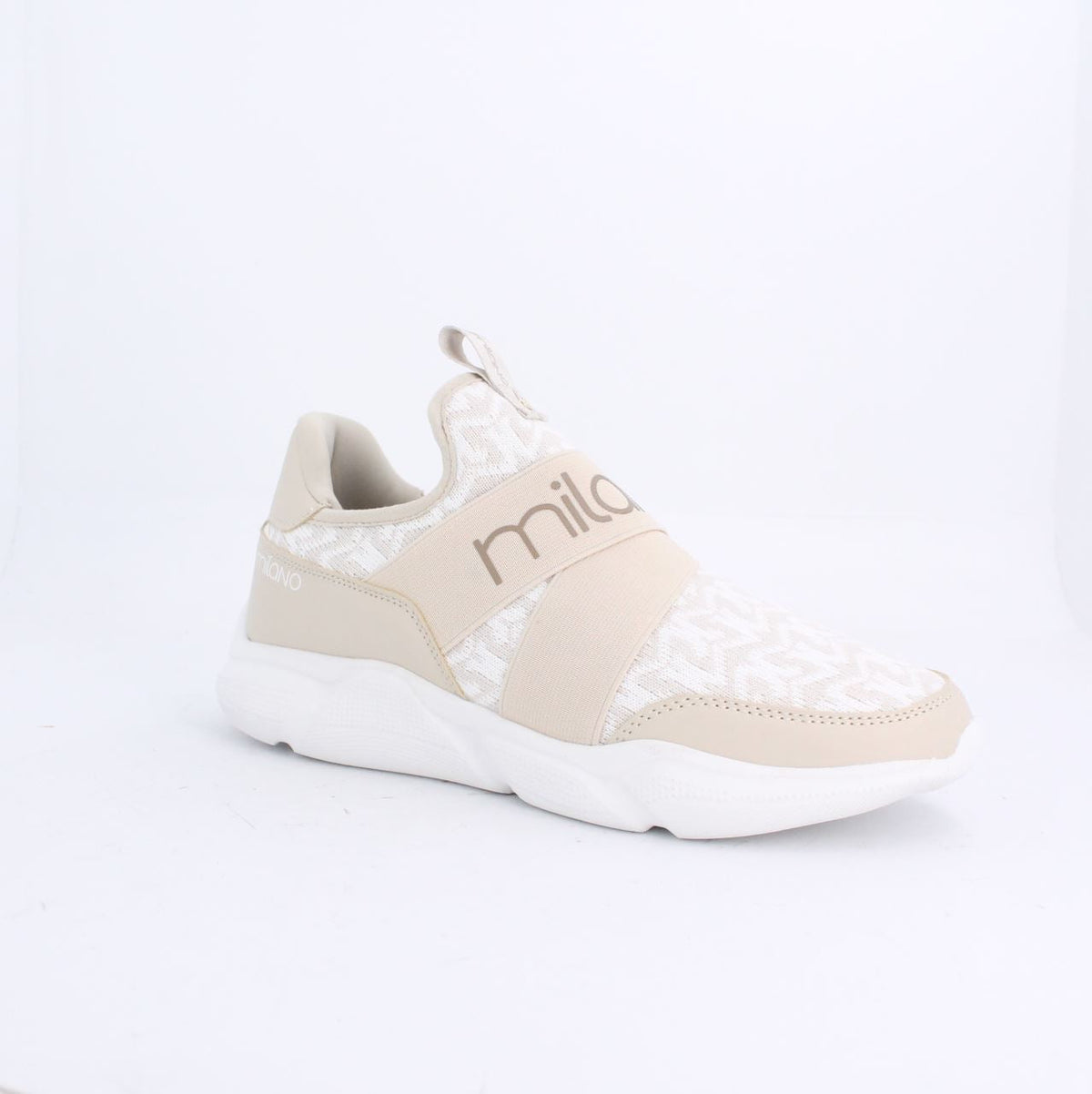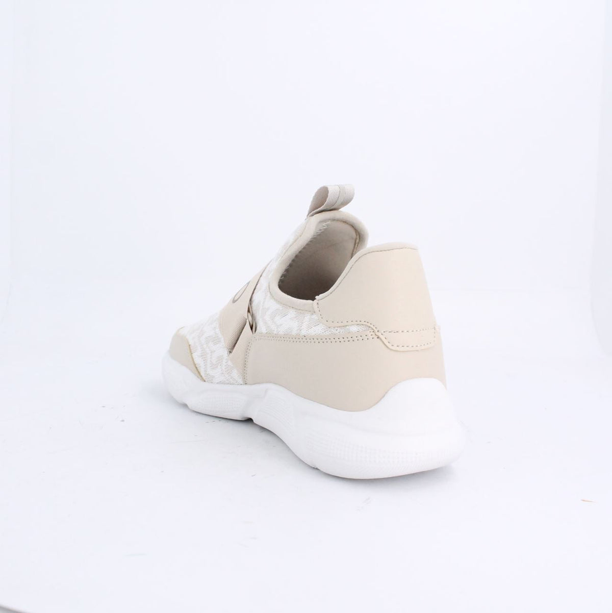Chic and easy to slip on, the upper is fashioned in a breathable fabric material which showcases our monogram pattern, but with a new design and concept. The elasticated bands across the upper add an extra bit of ease and the soft cushioning on the footbed is a great feature alongside the entire styling concept of this sports style. An option for days when you want to have a minimalist approach alongside a dash of style.