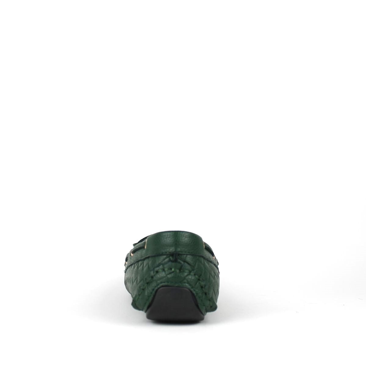 Lita women's moccasins, these shoes feature a classic moc-toe with a lace-up bow and tassels on the vamp. The side panels have a subtle weave pattern, a wraparound lace detail with metallic eyelets runs around the collar, it has a flexible sole, with textured finish for grip. Very versatile choice for both casual and smart-casual attire.