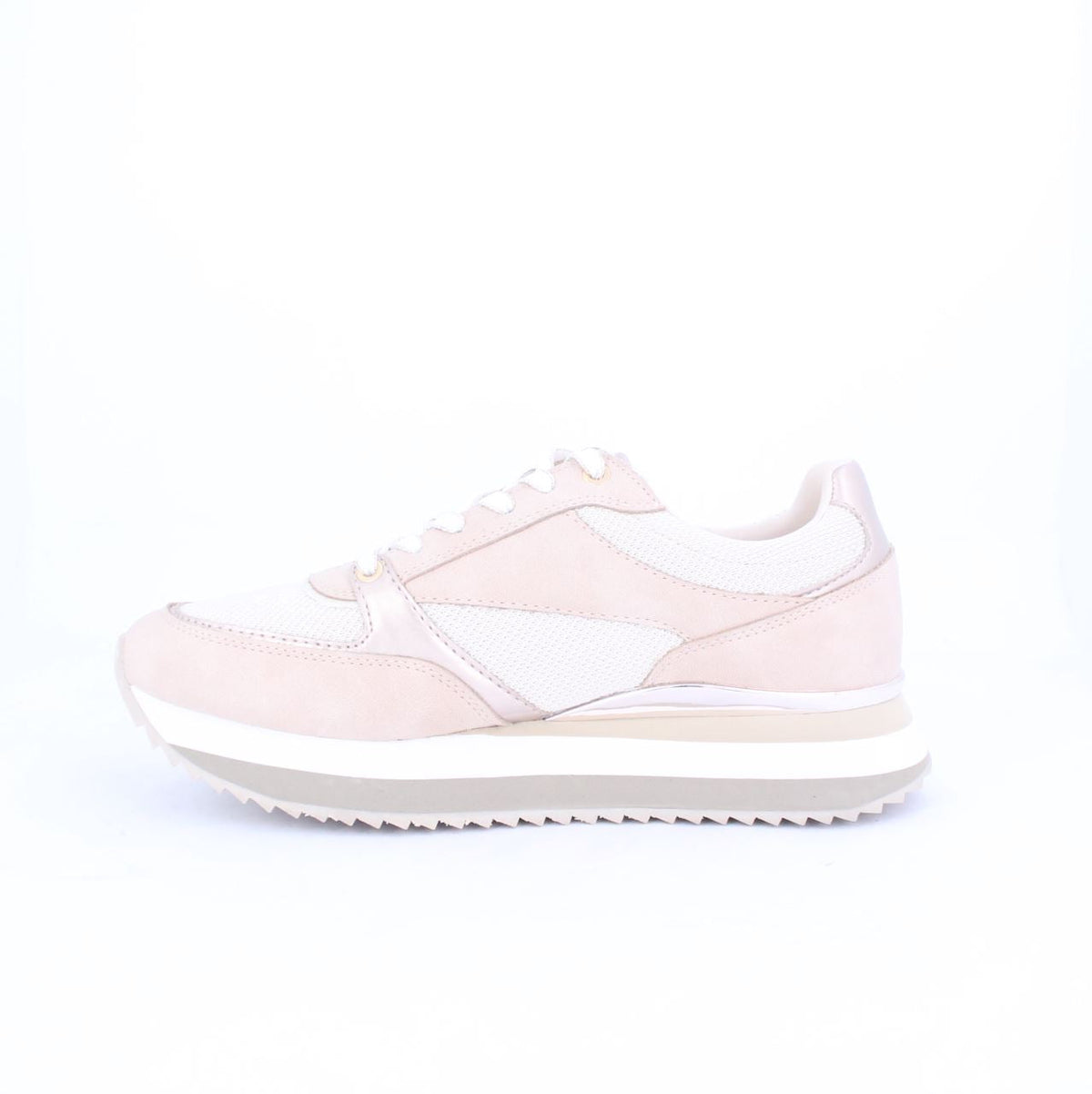 A blush pink lace-up sneakers with a mix of suede texture and mesh panels. It has a lightweight sole for flexibility, and a textured outsole for better grip. Perfect for casual wear and everyday activities.