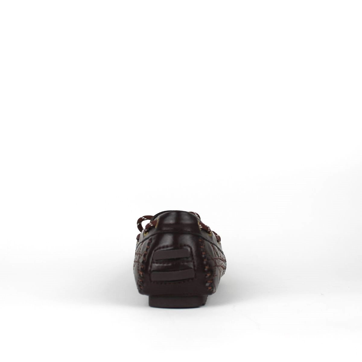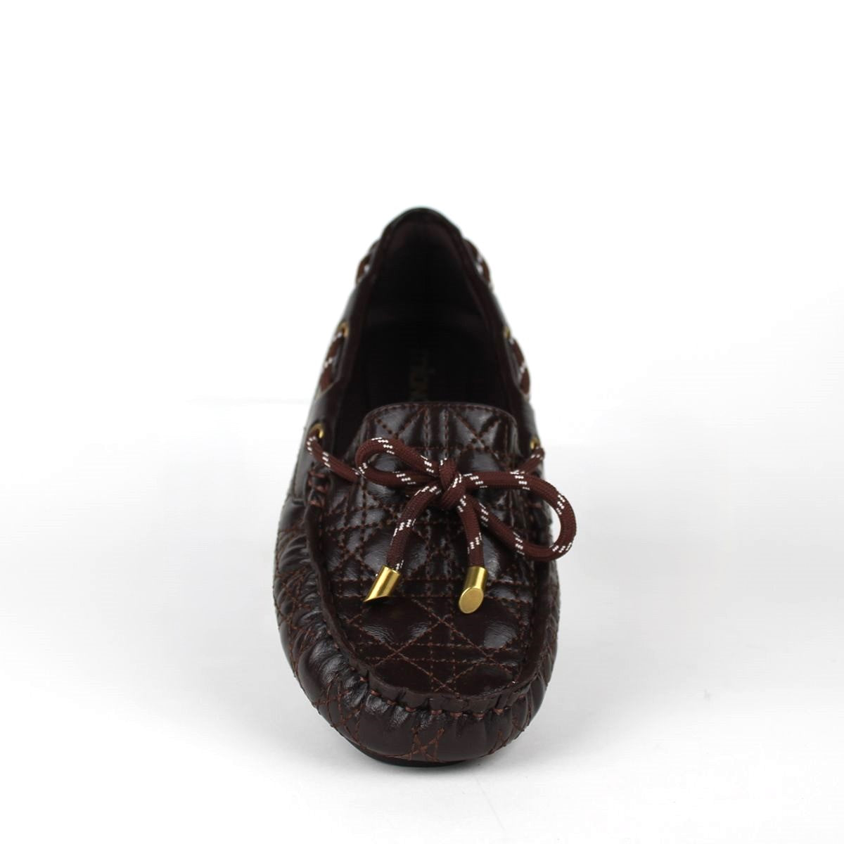 These stylish driving loafers are a sophisticated and comfortable choice for any occasion. They feature a quilted embossed texture on the upper for a distinctive look. A classic lace-up bow and laces that wrap around the collar through elegant gold-toned eyelets add a refined touch. The flexible sole provides excellent grip and ensures all-day comfort.