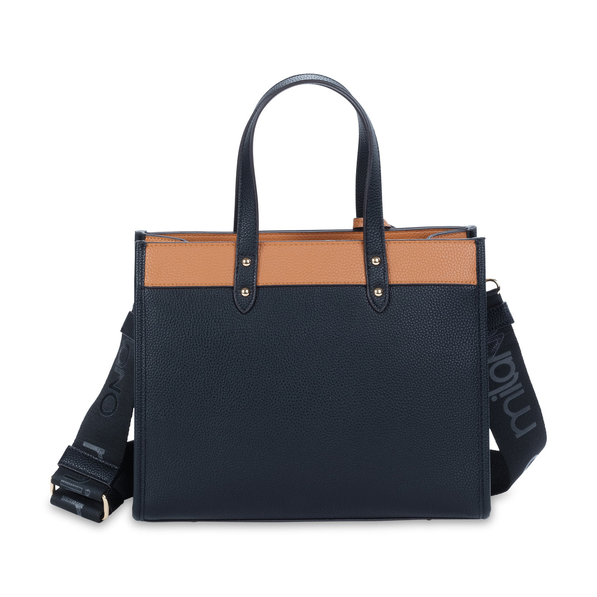 Take a moment to appreciate the beautiful black and cognac hue and subtle pattern of this tote bag. Its versatile design will delight anyone, and you can easily alternate between the double handles and adjustable shoulder strap to switch things up. It also features a roomy interior that can hold everything you need in a day and more.