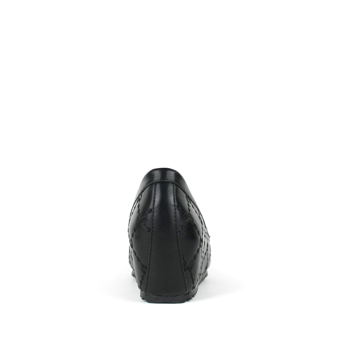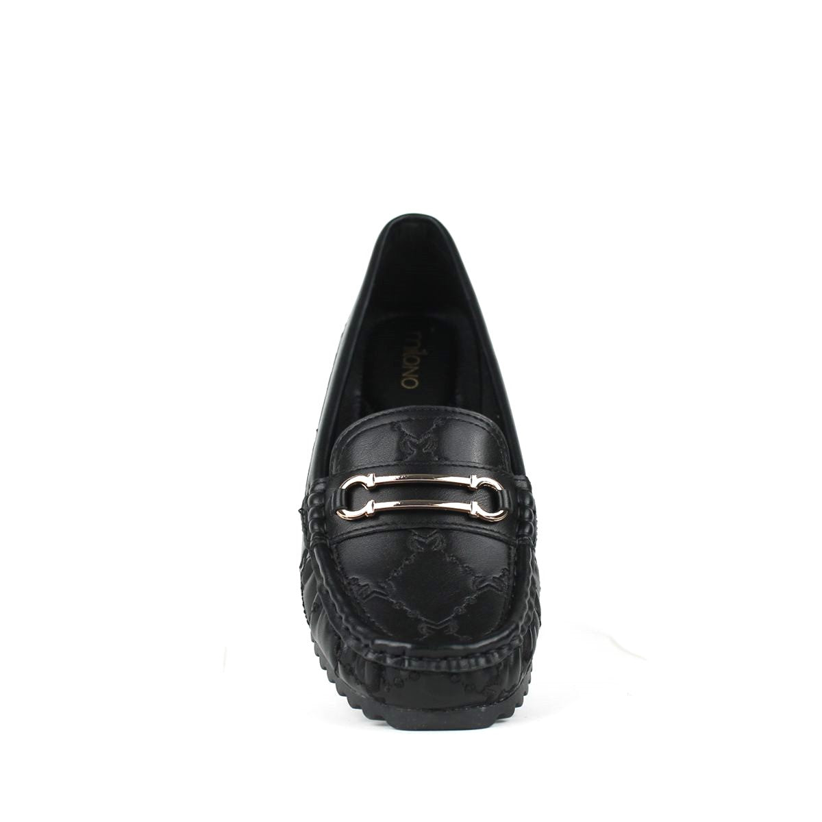 Stylish and comfortable wedge moccasins are elevated by an embroidered 'M' detail on the upper, giving them a sophisticated look. A decorative gold-toned buckle on the vamp adds a touch of elegance, while the hidden wedge heel provides a comfortable lift, making them ideal for all-day wear.