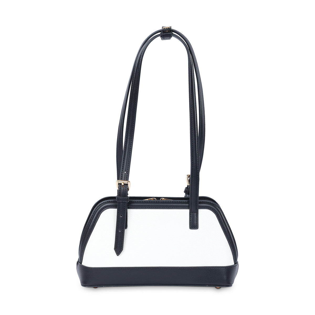 A modern, two tone shoulder bag with grab handles and a detachable, adjustable long strap. Featuring our Milano logo plate and a premium, detachable luggage tag. The perfect bag to complement monochrome outfits this season