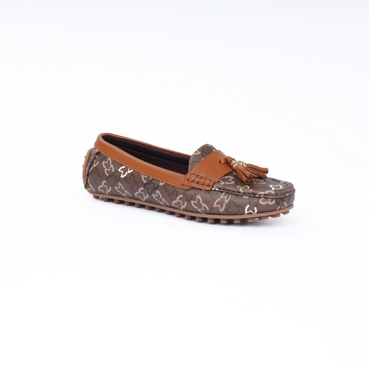 Chic and classic, brown moccasins with elegant tassels and signature monogram print for a refined, stylish finish.